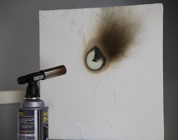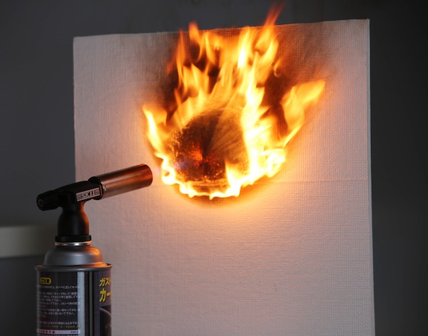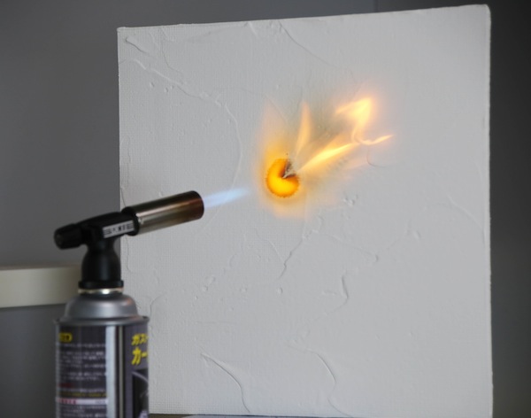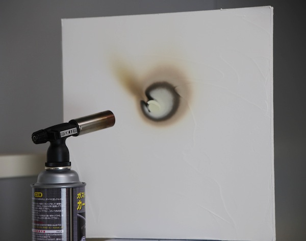 石膏ボードを使って最高温度1,700℃のバナーを当ててみました。