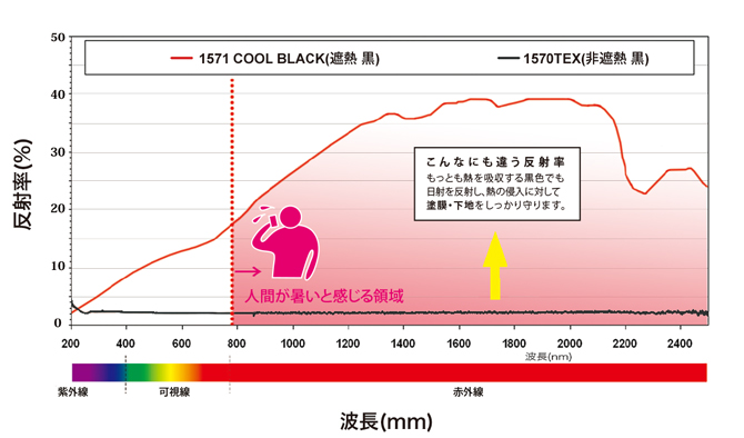 非遮熱仕様 日射反射率 比較表