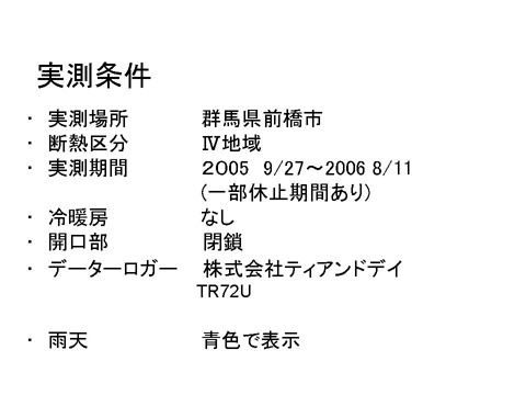 本データに基づく推定によると、外部より居室内に入射する騒音レベルのうち25m離れた盛土軌道を時速200㎞で走行する新幹線の騒音については、125~4kHzの周波数帯におけるA.Pで-40dB、同じく直近3mを通過する大型トラックの走行音については-35dB減衰する結果となった。 また、居室内より外部に放射する騒音レベルについては、ピアノのピークレベルで-39dB、小太鼓のピークレベルで-33dBの減衰が期待できます。 * 一般的なクーラーの吹き出し音、ささやき声、住宅地の昼間は40dBと言われています。